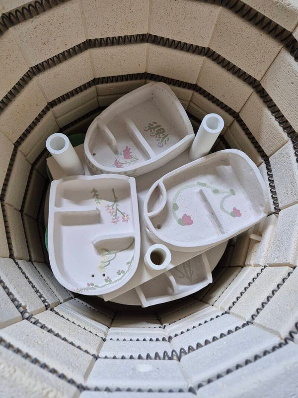 - Na het decoreren en het drogen gaat jou object opnieuw in de keramiek oven. Deze keer wordt het object op ongeveer 1060 graden gebakken.